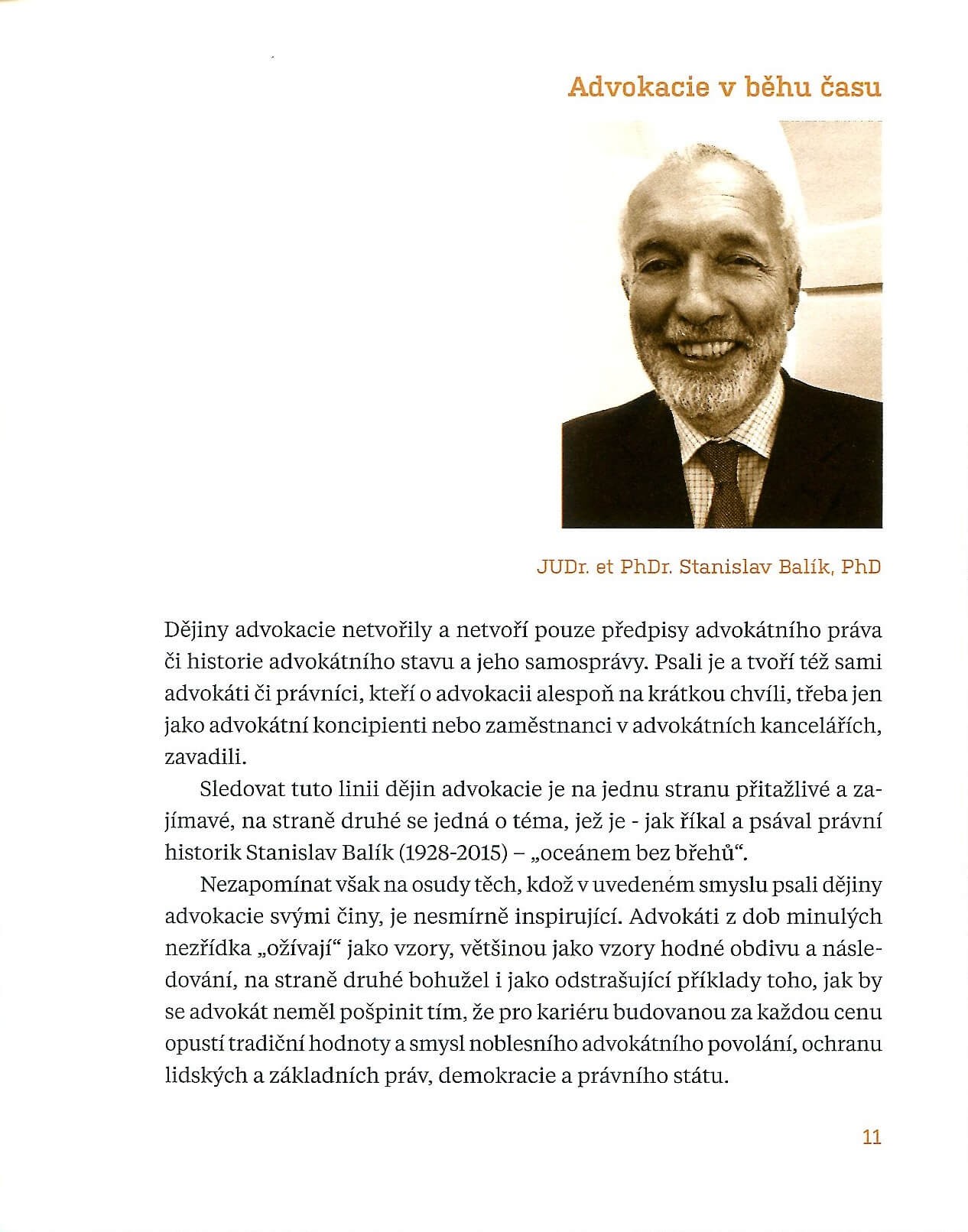 Kniha představuje životní osudy jedné advokátky, osmi advokátů a jednoho advokátního koncipienta. Každému z nich postavilo 20. století do cesty nejednu životní křižovatku, nejednu osudovou volbu: zda se dál přizpůsobit režimu a jako mnozí jiní podlehnout strachu o sebe a své blízké, nebo se odvážným bojem za právo a spravedlnost totalitě vzepřít. Poutavý text, založený na rozsáhlém archivním výzkumu a rozhovorech s mnoha pamětníky, doprovází velký počet unikátních fotografií a reprodukcí dobových dokumentů.