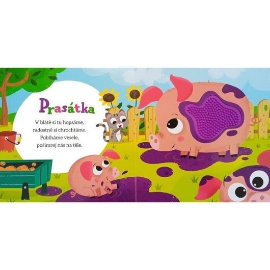 Kniha obsahuje barevné obrázky zvířátek z farmy s popisky,…