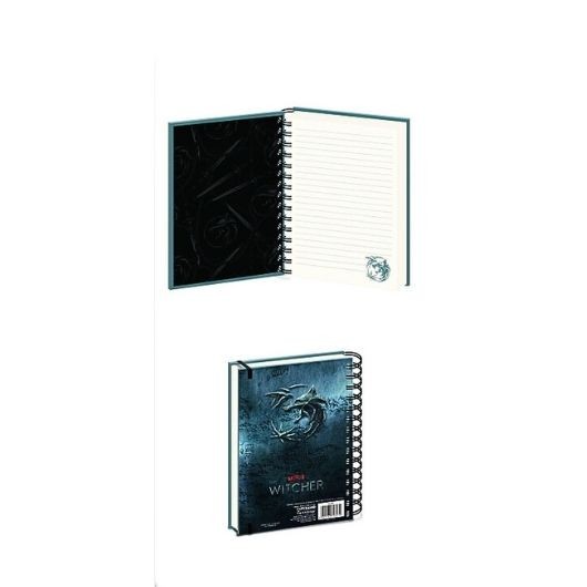 Linkovaný blok ve velikosti A5 s motivem Zaklínače má praktickou kroužkovou vazbu a gumičku proti rozevření.