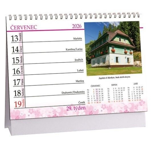 Stolní kalendář na rok 2026 s týdenním kalendáriem a…
