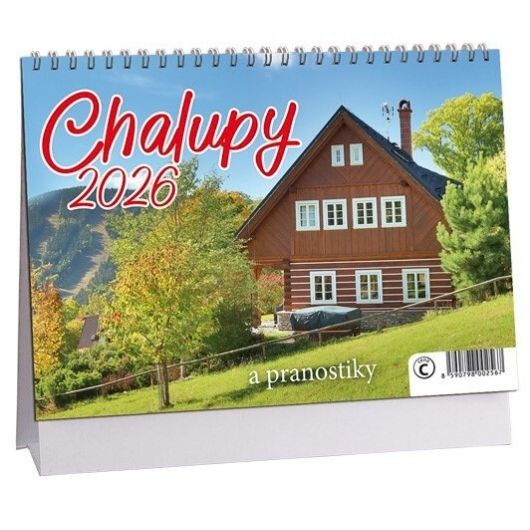 Stolní kalendář na rok 2026 s tematickými obrázky, lidovými pranostikami a týdenním zapisovacím kalendáriem.