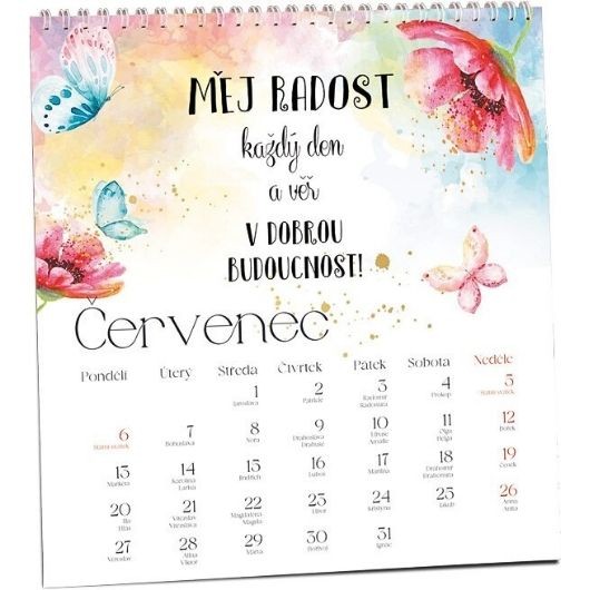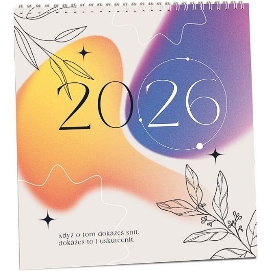 Nástěnný kalendář na rok 2026 s citáty slavných osobností a měsíčním jmenným kalendáriem.
