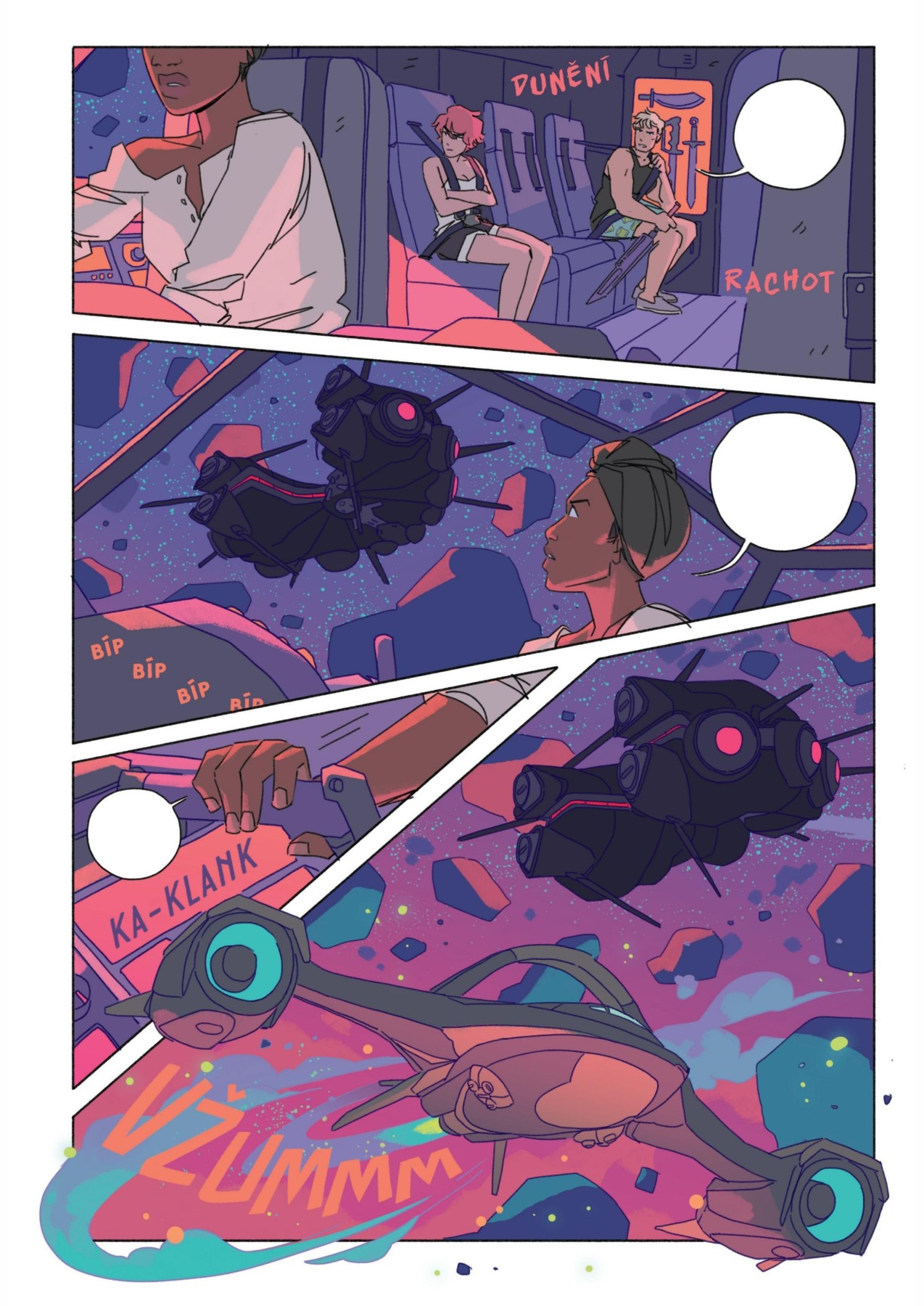 Útěk byl jenom začátek! Ale tyhle emancipované holky se hned tak nevzdávají. Jestli chtějí mít šanci zvítězit, musí spojit síly a čelit patriarchátu společně. Mise splněna – Pan a jejímu týmu se na konci prvního dílu povedlo zachránit princeznu Scottie. Teď už jenom zbývá vysadit ji v bezpečné oblasti někde daleko, aby mohla začít nový život. Ale co když Scottie o nic z toho nestojí? Zdá se, že byť mají členky posádky stejné cíle, jejich představy, jak jich dosáhnout, se dost liší. Zatímco Cass chce pokračovat v turnajích, Kate by ze všeho nejradši rozpoutala revoluci. A Pan, ta nedokáže zapomenout na Taru a její vzkaz. Co když je Tara pořád tam někde venku a má strach, že ji Pan opustila? Cosmoknights 2 je pokračování barevného komiksu zasazeného do neo-středověku. Pojednává o partě sympatických emancipovaných holek, které se snaží změnit svět k lepšímu a zároveň se naučit fungovat mezi sebou. Na cestě za jejich dalším vesmírným dobrodružstvím budou muset čelit nejenom nebezpečným pirátkám, ale také svým vnitřním démonům.