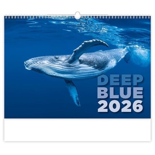 Nástěnný kalendář na rok 2026 s tematickými obrázky a měsíčním kalendáriem.