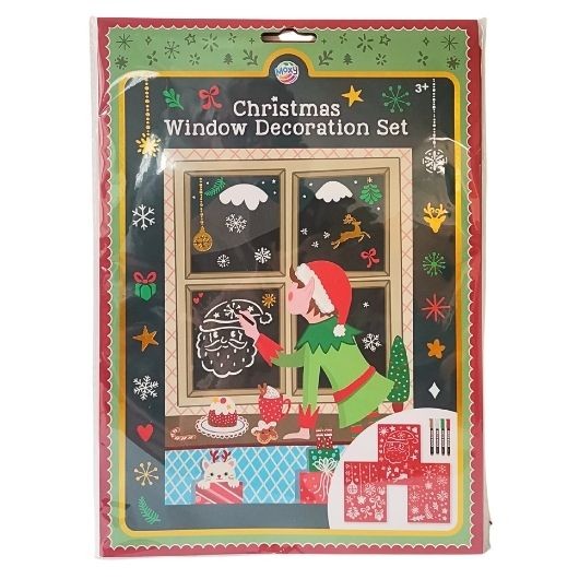 Ozdobte si okna vánočními motivy. Sada obsahuje plastové šablony s obrázky a 4 fixy (zlatý, bílý, červený, zelený).