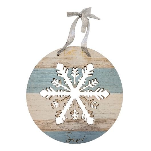 Vánoční dřevěná dekorace v podobě věnce s motivem sněhových…