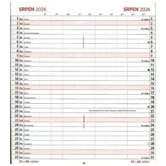 Týdenní diář na rok 2026 ve velikosti A5. Diář obsahuje:…