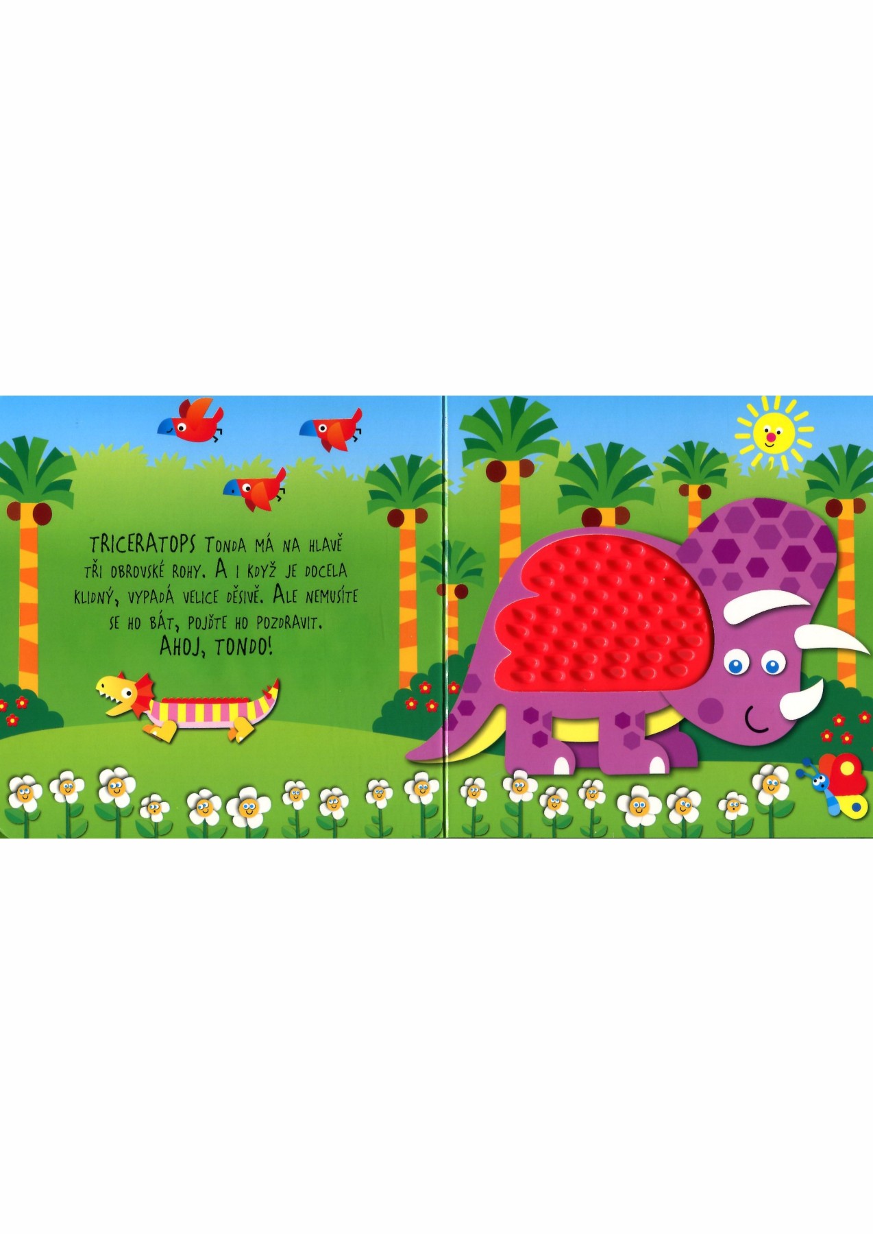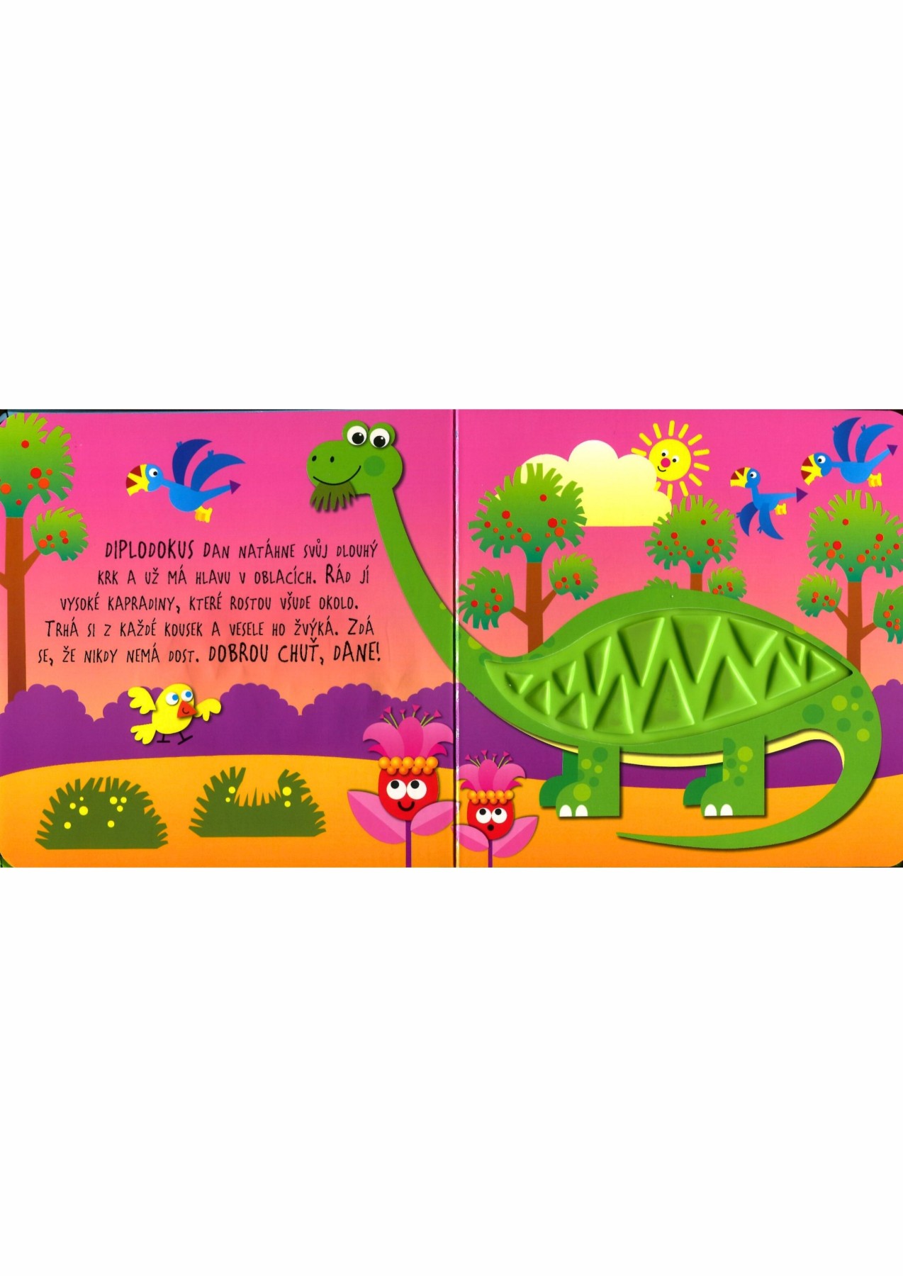 Dotkněte se dinosaurů. Úžasné dětské leporelo s tvrdými deskami, které nabízí interaktivní zážitek pro malé objevitele. Toto leporelo je navrženo tak, aby děti mohly poznávat různé druhy dinosaurů prostřednictvím hmatových prvků, které stimulují jejich smyslové vnímání. Leporelo má nádherné barevné ilustrace dinosaurů, které přitahují pozornost dětí a podporují jejich představivost. Každá stránka je vybavena dotykovými prvky, které umožňují dětem zažít textury a tvary různých dinosaurů, což zvyšuje jejich interakci s knihou. Kniha nejenže zabaví děti na dlouhou dobu. Děti se tak učí o prehistorickém světě hravou formou. Toto leporelo je ideální pro rozvoj motorických dovedností a smyslového vnímání dětí, což z něj činí skvělý dárek pro malé milovníky dinosaurů.