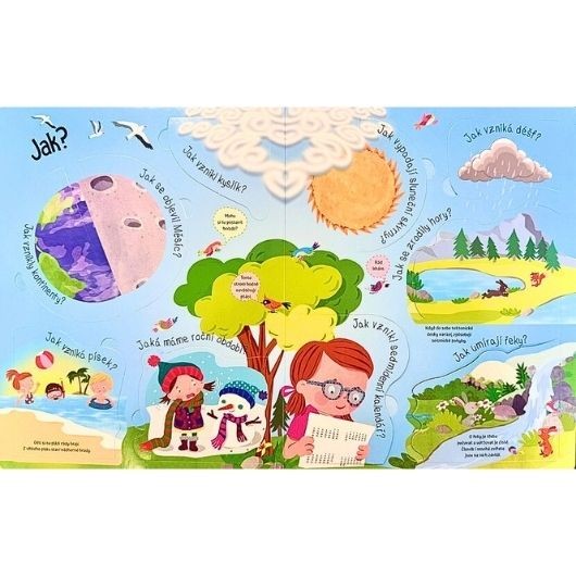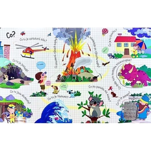 Otoč okénka v této knize a objevíš odpovědi na spoustu otázek, které ti řeknou něco o světě kolem nás, místě, kde žijeme, jeho historii i současnost. Dozvíš se například, jak vzniká déšť, jaké vlastnosti má koala, kdo vynalezl kino a mnoho dalších…