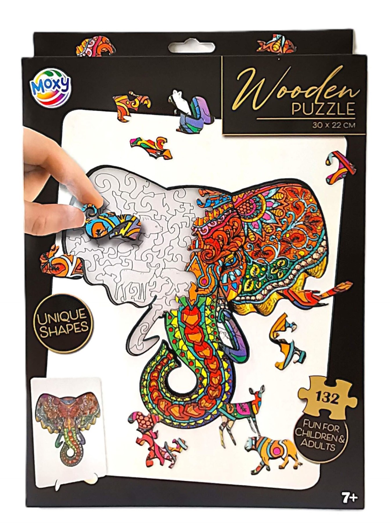 Dřevěné puzzle s motivem slona se skládá ze 137 dílků.…