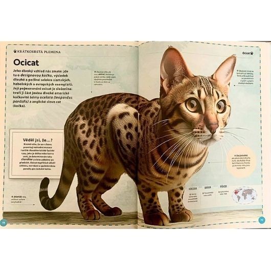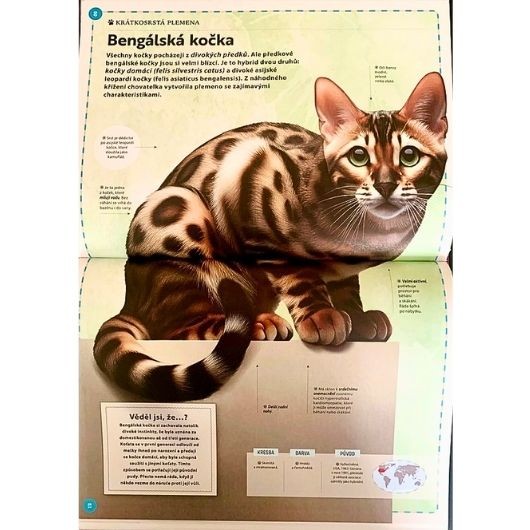 Je ještě někdo, kdo si myslí, že všechny kočky jsou stejné? Na světě vznikly už desítky kočičích plemen. Mezi nimi jsou takové rozdíly, že neexistuje možnost, že by byla dvě identická. Spousta plemen je zcela přírodního původu, ale ostatní jsou výsledkem selekce, která už více než století vytváří neobyčejná stvoření, která žijí v naší blízkosti jako takříkajíc rovnoprávní členové rodiny. Tahle kniha tě seznámí s charakteristikami, které sdílejí všechna kočičí plemena, a zároveň tě upozorní na zvláštnosti, které u každého plemene představují jedinečnost. Odhaluj s námi překvapivý průběh půvabných kočičích stvoření a nech se okouzlit tajemstvím jejich hypnotizujícího pohledu, ať už žily ve starověkém Egyptě nebo na dvoře králů a královen. anebo se potulují v ulicích měst.