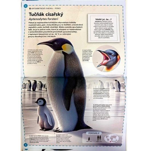 Fascinující svět v zemi sněhu a ledu - Polární zvířata přináší okouzlující pohled na úžasné obyvatele odlehlých polárních krajin. S nádhernými ilustracemi se čtenáři vydají do světa ledové mořské vody, bílých plání pokrytých sněhem, ledových ker a nekonečného nebe, kde žije pestrá škála savců, ryb i ptáků, kteří se dokázali přizpůsobit drsným podmínkám severního a jižního pólu. Kniha seznamuje čtenáře s životními zvyky a charakteristikami živočichů žijících v Severním ledovém oceánu, Jižním oceánu, na arktických ostrovech i na ledové Antarktidě. Čtenáři poznají fascinující příběhy, například plejtváka obrovského, který proplouvá vody obou oceánů, nebo rybáka dlouhoocasého, jenž každoročně urazí neuvěřitelných 71 000 km mezi Antarktidou a Arktidou. Tato kniha nabízí hluboký a poutavý vhled do života obyvatel lední říše a jejich unikátních strategií přežití v extrémních polárních podmínkách. Díky velkoformátovým ilustracím se tato velká XXL encyklopedie určitě stane chloubou vaší rodinné knihovny.