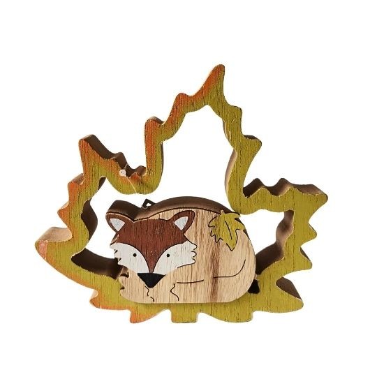 Figurka liška v listu / ježek dřevo