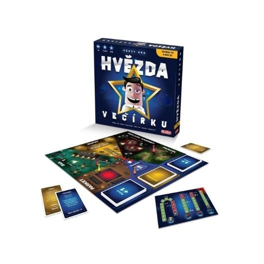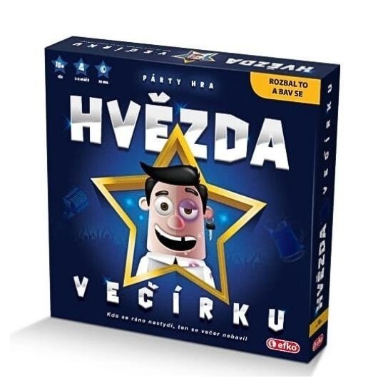 Kdo se ráno nestydí, ten se večer nebavil! Rozjeď firemní večírek u sebe doma a směj se s kámošema až do vyčerpání (karet). V party hře Hvězda večírku tě čeká úplně to stejné, co na firemní party: piješ, bojuješ o chlebíčky, pomlouváš kolegy. Taky můžeš (ale nemusíš) plnit různé úkoly, které zaručeně pobaví celou společnost. Ale pozor! Kdo se opije až moc nebo dostane padáka, okamžitě končí. Poslední se právem stává hvězdou večírku. Hra pro hráče od 18 let.