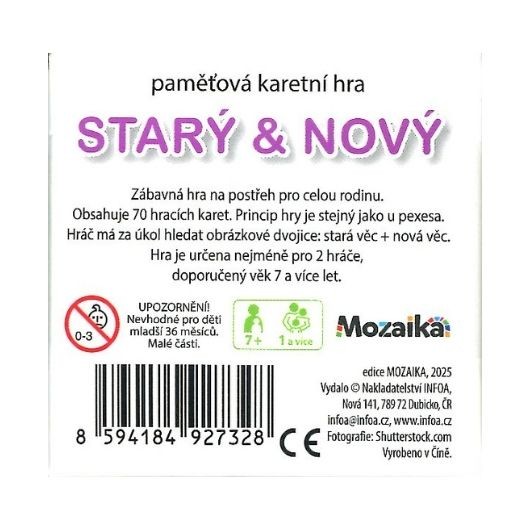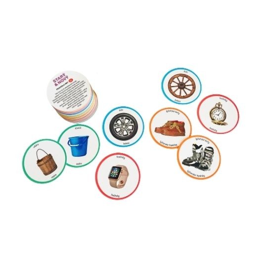Zábavná hra na postřeh pro celou rodinu na principu pexesa. Hráč má za úkol hledat obrázkové dvojice: stará věc + nová věc.