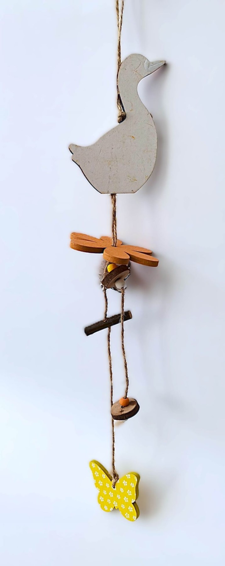 Závěsná girlanda s dřevěným motýlem nebo s květinou.