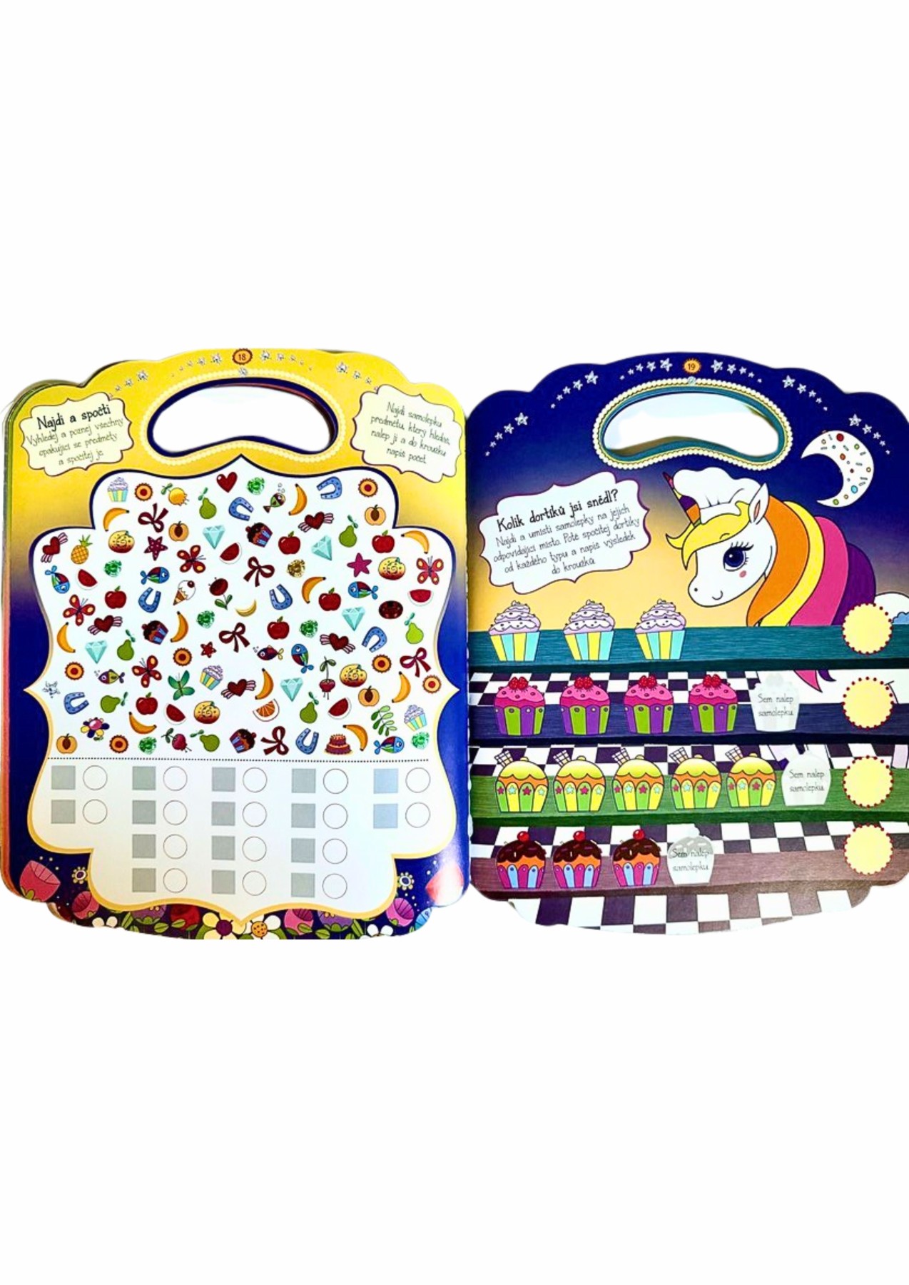Tato jedinečná kniha ve tvaru kabelky je plná zábavných aktivit, které děti od pěti do osmi let uchvátí. Obsahuje více než 400 samolepek, které děti mohou umisťovat na ta správná místa, aby rozvíjely svou kreativitu a jemnou motoriku. Kniha nabízí širokou škálu aktivit jako jsou spojovačky, hledání rozdílů, doplňovačky, správné srovnání obrázků, bludiště, jednoduché početní a slovní úlohy. Je ideální jako příprava pro předškoláky před zápisem do školy, ale také jako zábavný způsob, jak zkrátit dlouhé chvíle. Díky svému tvaru a interaktivnímu charakteru je tato kniha skvělým nástrojem pro rozvoj představivosti a tvůrčího myšlení dětí. S kouzelnými jednorožci se děti mohou ponořit do světa fantazie a magie, zatímco se učí a baví.