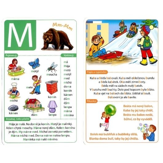 Krabička obsahuje 25 oboustranných obrázkových karet a je určena pro všechny nesprávně vyslovující děti, jejich rodiče, logopedy a pedagogické pracovníky. Je pomůckou pro cvičení výslovnosti jednotlivých hlásek.
