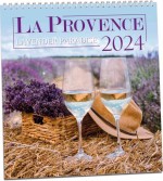 Nástěnný kalendář na rok 2024 s tematickými obrázky a měsíčním jmenným kalendáriem.