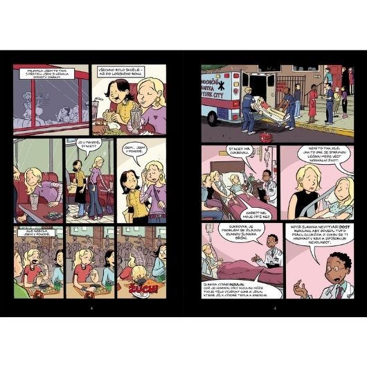 Dvanáctiletá Stacey žila v New Yorku, měla spoustu přátel a nic jí nechybělo. Milovala rušný život ve velkoměstě. Potom ale onemocněla cukrovkou. Těžko se se svou nemocí vyrovnávala, navíc přišla o všechny kamarády. Proto jí ani nevadilo, když se s rodiči přestěhovala do městečka Stoneybrook. Tady poznala Kristy, Mary Anne a Claudii, s nimiž se spřátelila a společně založily klub na hlídání dětí. Teď se ale objevila konkurenční agentura s nekalými praktikami. Rodiče navíc Stacey domlouvají schůzky u dalších a dalších lékařů a ona je musí přesvědčit, že je samostatná a zodpovědná dívka a se svou nemocí si dokáže poradit. Druhý díl nové komiksové série od Rainy Telgemeierové, autorky bestsellerů Duchové, Úsměv, Drama, Nervy a Ségry, je tady a přináší další z příběhů Kristy a jejího klubu Ann M. Martinové, jednoho z nejpopulárnějších komiksů své doby (celosvětově se vytisklo více než 176 miliónů knih), podle kterého vznikl i neméně známý stejnojmenný seriál.