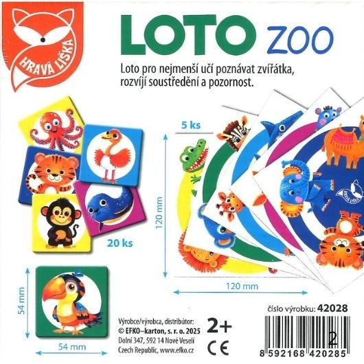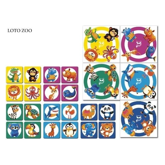 Zábavná hra Loto učí nejmenší děti poznávat zvířátka žijící v zoo, rozvíjet soustředění a pozornost.