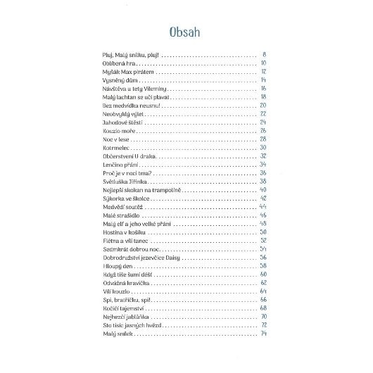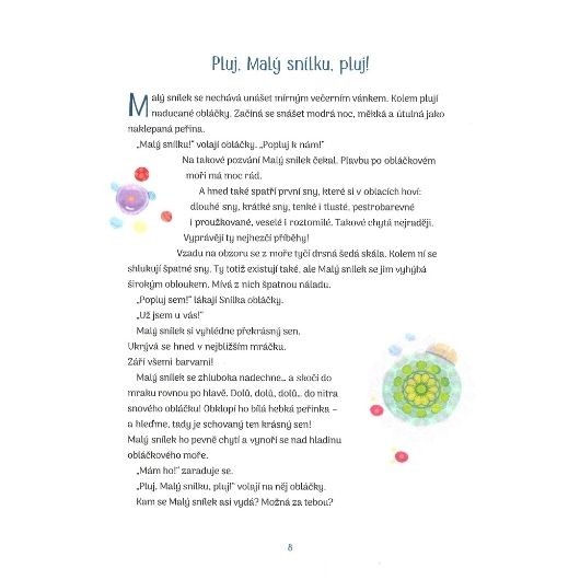 33 pohádek na dobrou noc. Malý snílek se vznáší pod nočním nebem a v oblacích sbírá ty nejkrásnější sny: o zvířátkách, kouzelných bytostech i o malých dobrodružstvích. Jakmile jich má plnou náruč, přináší je dětem na dobrou noc.