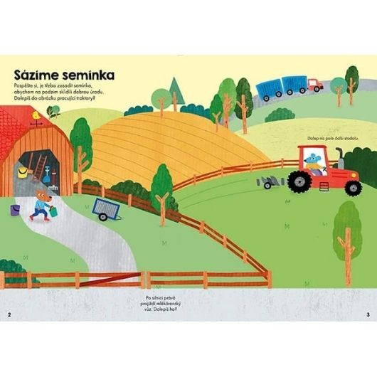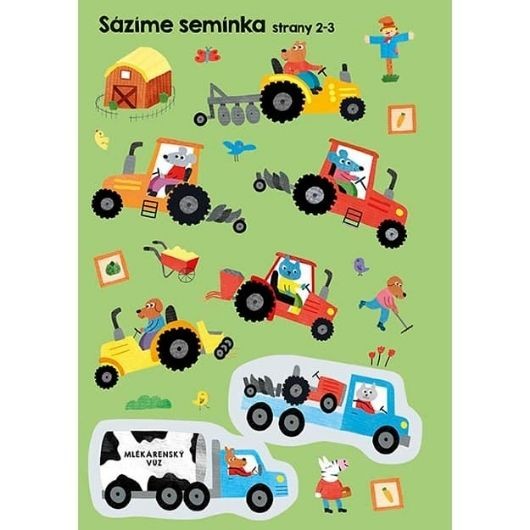 Podívej se s námi na farmářský trh, staveniště i senoseč! Vyber správné samolepky a probuď obrázky k životu! Samolepky můžeš používat znovu a znovu!