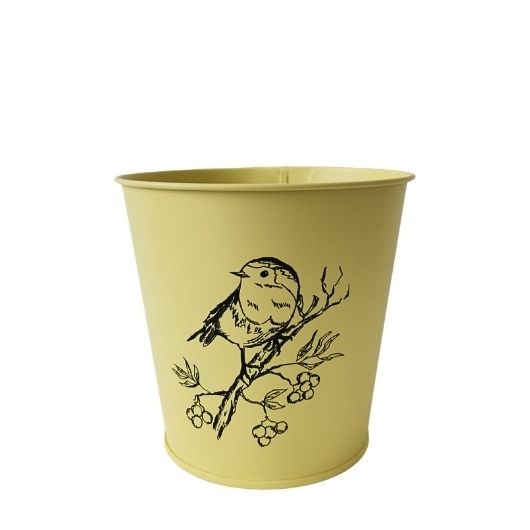 Kovový obal na květináč v krémové barvě s motivem ptáčka na…
