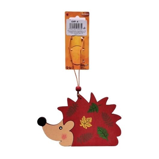 Závěsná dřevěná ozdoba ve tvaru veverky s oříškem.
