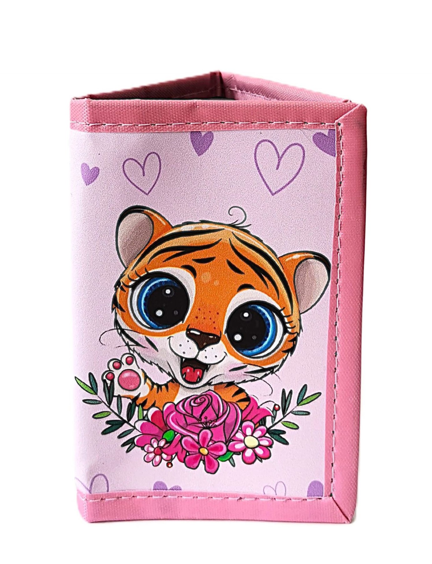 Dětská peněženka s motivem zvířátek. Peněženka má jednu velkou kapsu, která se uzavírá pomocí kovového zipu a 4 menší kapsičky.