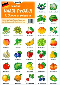 Pexeso s obrázky ovoce a zeleniny. Na jadné kartičce s názvem v češtině, na druhé v němčině. Ideální propojení zábavy a výuky.