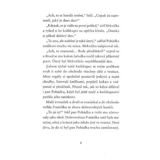 Pan knihkupec Pohádka už konečně nebydlí v domku se šikmou sedmičkou sám. Zabydlelo se u něj malé zvířátko, zoslík Mrkvička, a obrátilo nudné všední dny vzhůru nohama. Díky Mrkvičkovi prožije pan Pohádka krásný a veselý rok plný bláznivých nápadů.