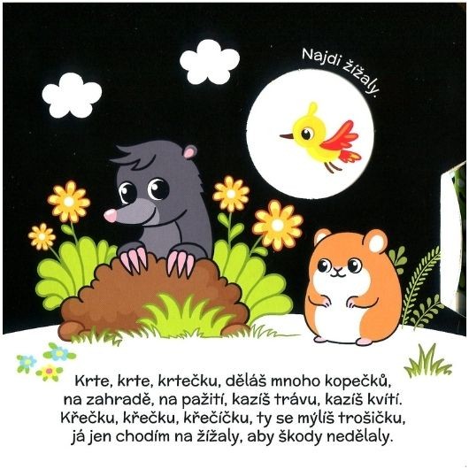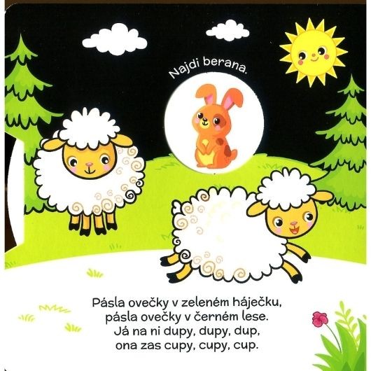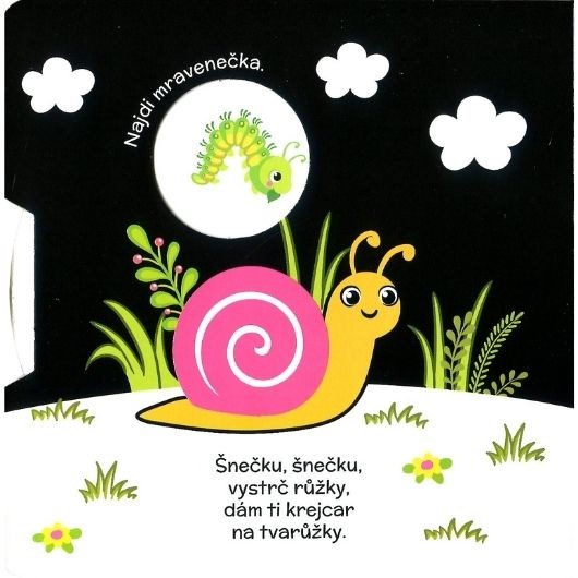 Interaktivní leporelo s barevnými obrázky a pohyblivými kolečky. Pomocí kolečka děti hledají odpovědi na různé otázky.