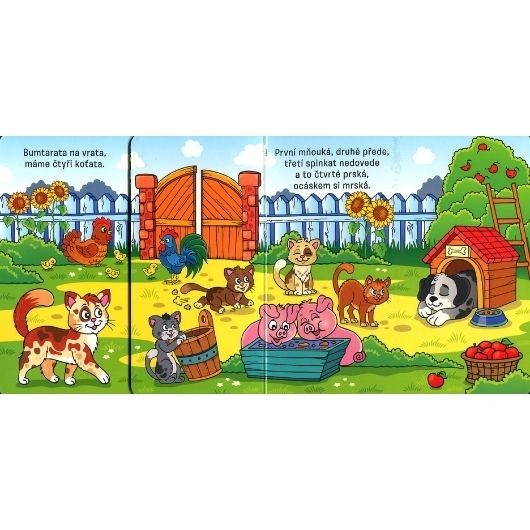 Poutavě ilustrovaná knížka s klopami, která napomáhá učit děti lidová říkadla a písničky. Rozvíjí u nich představivost, učí rytmu a posiluje paměť a mluvidla.