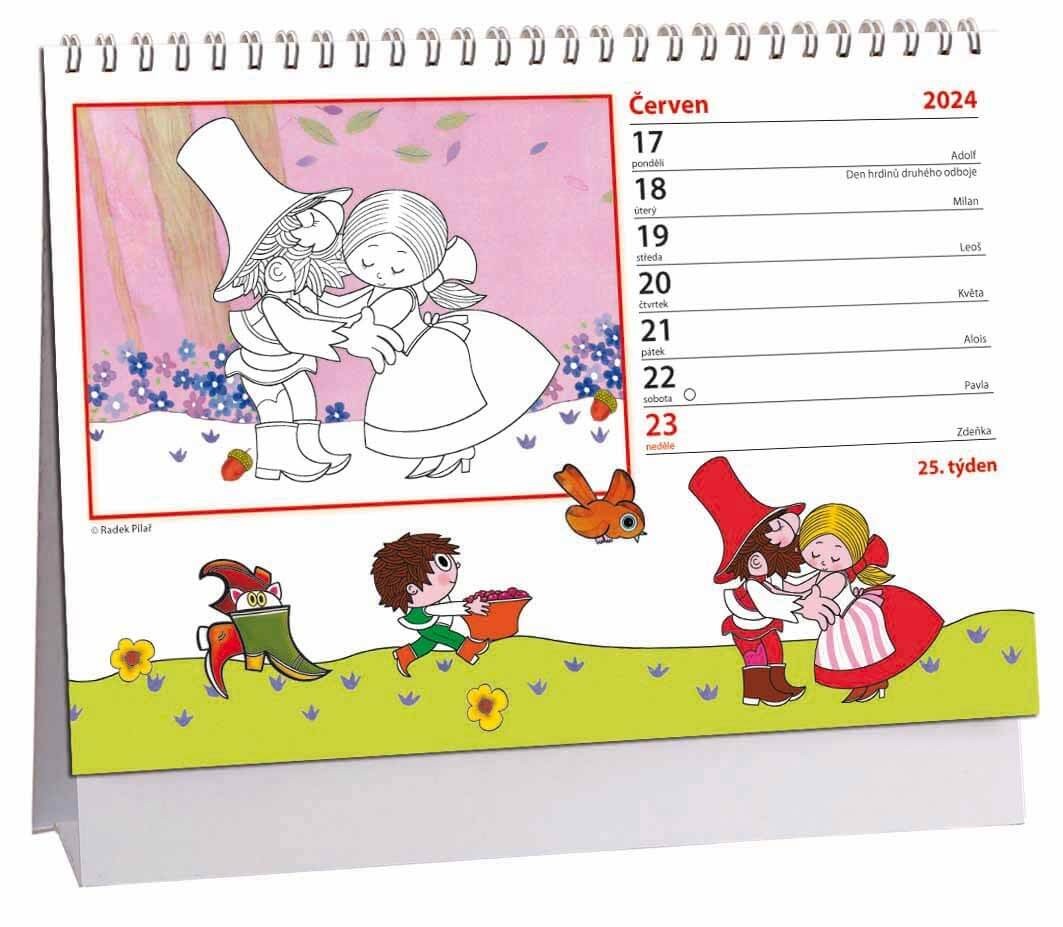 Omalovánkový stolní kalendář pro děti na rok 2024 s Rumcajsem, Mankou a Cipískem