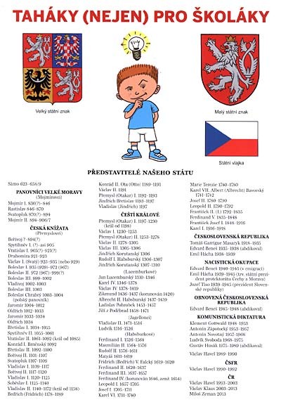 V této přehledné příručce najdete "taháky" – prakticky uspořádané přehledy z českého jazyka, dějepisu, chemie, fyziky a matematiky. Obsahuje vše od vyjmenovaných slov po skloňování zájmen, od stručného přehledu našich dějin po souhrn našich chráněných krajinných oblastí, od dělení chemických látek až po souhrn důležitých kyselin, od výpočtů a informací o hmotnosti a hustotě až po měření síly, od přehledu římských číslic až po stručný přehled geometrie – prostě vše, co pro osvojení českého jazyka, matematiky, dějepisu, chemie a fyziky budete potřebovat. Jednotlivé informace jsou názorně a přehledně uspořádány a podrobně vysvětleny tak, aby pro vás bylo učení s touto příručkou hračka!