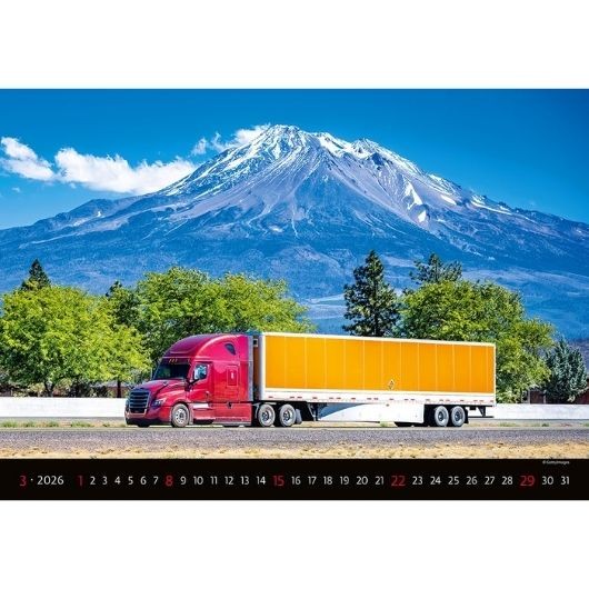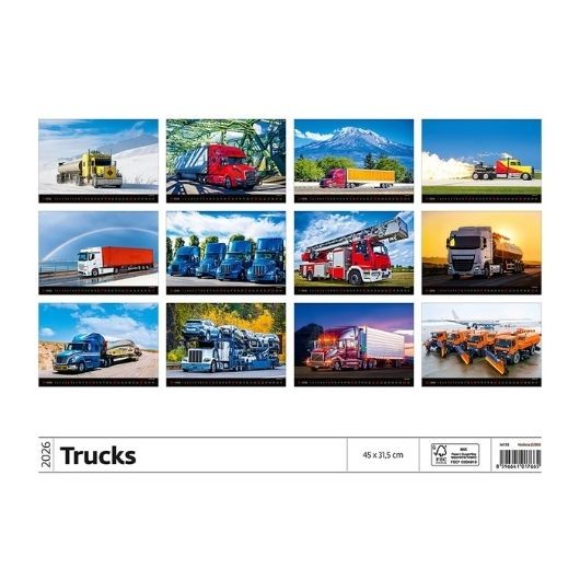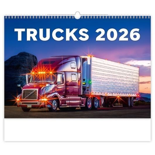 Nástěnný kalendář na rok 2026 s tematickými obrázky a měsíčním kalendáriem.