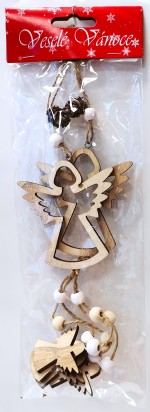 Samostatně stojící vánoční dřevěná dekorace v podobě anděla.