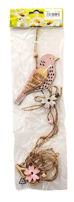 Jarní dřevěná závěsná dekorace ve tvaru domku s ptáčky a…