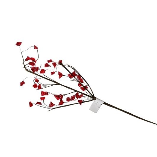 Dekorace v podobě větvičky s červenými skleněnými kamínky.