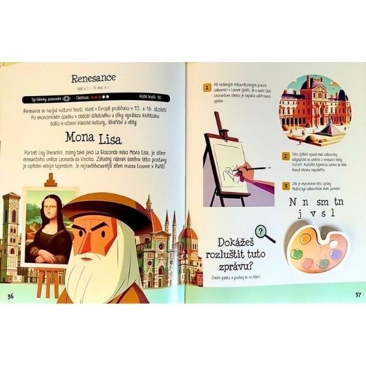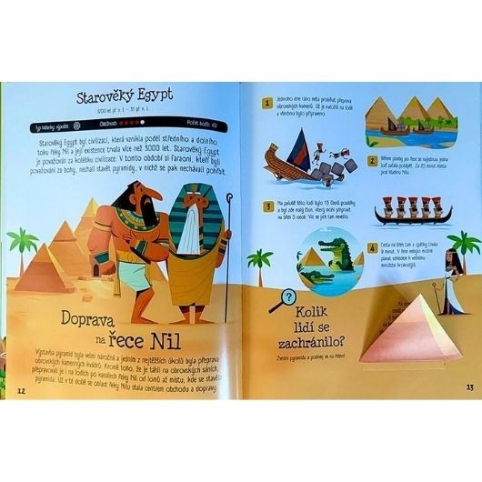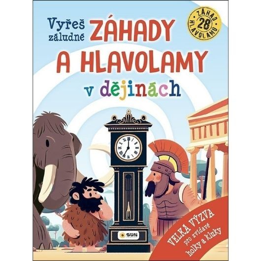 Vyřeš záhady a hlavolamy v dějinách. 28 záhad a hlavolamů - Velká výzva pro zvídavé a holky a kluky. V této knize se dozvíte mnoho zajímavostí z historie a ještě můžete otestovat své hlavičky. U každého historického období čeká úkol, který budete řešit, někdy to bude pořádná fuška. Můžete je také zkusit udělat za určitý čas a ještě je i lze bodovat. Takže můžete soutěžit s kamarády. A správné odpovědi v knize naleznete také. Tak si pojďte hrát. Tato napínavá publikace vás provede světem historie, a to ne jen tak ledajakou: v každé epoše se čtenář setká s nějakou záhadou, logickou hádankou, hlavolamem nebo postřehovou výzvou. Cílem je nejen pobavit, ale také umožnit dětem hravou a zážitkovou cestou objevovat minulost lidstva – od jeskynních kreseb až po moderní dobu. Podrobnosti : Kniha obsahuje celkem 28 unikátních hádanek, z nichž každá se vztahuje k určité historické epoše. Děti se mohou zúčastnit dobrodružství, které je provede časem: od pravěku, setkání se starými Řeky a Římany, prožívání výzev středověkého rytířství až po svět osvícenství, revolucí a 20. a 21. století. Každá hádanka aktivuje jiný typ myšlenkových schopností: některé vyžadují logické dedukce, jiné vyžadují výpočetní dovednosti nebo pozorné pozorování. Čtenáři se tak nejen seznamují s historií, ale také rozvíjejí své dovednosti v řešení problémů, kreativitu a soustředění. Ilustrace v knize jsou veselé, stylové a informativní. Postavy – například starověký válečník, jeskynní muž nebo francouzský vojenský důstojník – jsou zobrazeny barevně, což dětem pomáhá pochopit atmosféru, oblečení a prostředí dané epochy. Vizuální prvky slouží nejen jako ilustrace, ale jsou také aktivní součástí hádanek: v mnoha případech závisí řešení hádanek na všímání si malých detailů.
