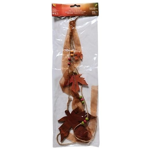 Podzimní závěsná dekorace s motivem dřevěného plotu s dýní.