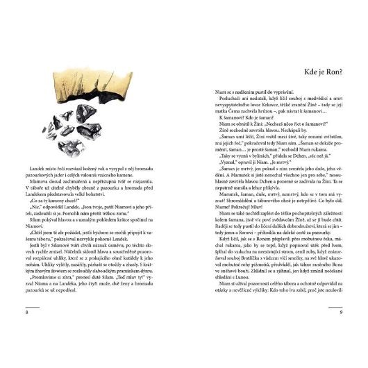 Závěrečný díl trilogie o zemi mamutů staví našim hrdinům do cesty nepřátele mnohem horší než jeskynní medvědy, lvy nebo hyeny. Nebezpečí, kterému čelí chlapec Niam, jeho sestra Žíně, žákyně moudrého šamana, odvážný Ron, ochočený vlk Bratříček a další obyvatelé tábora lovců mamutů pod Velkým kopcem sice nemá ostré zuby ani drápy, přesto je hrozivější. Oheň a led. Zemi mamutů zachvátí obří stepní požár a současně ji svírají nezadržitelné masy ledu, které v podobě ledovců přináší blížící se vrchol doby ledové. Ke všem přírodním pohromám se navíc přidává hrozba ze strany cizích, loupeživých lovců. Překonají Niam, Ron a Žíně všechny nástrahy života v závěru starší doby kamenné? Spisovatel Pavel Radosta se inspiroval nejnovějšími vědeckými poznatky o době lovců mamutů a napsal dobrodružný příběh pro všechny zájemce o toto období. Knihu doprovázejí působivé ilustrace Kateřiny Coufalové.