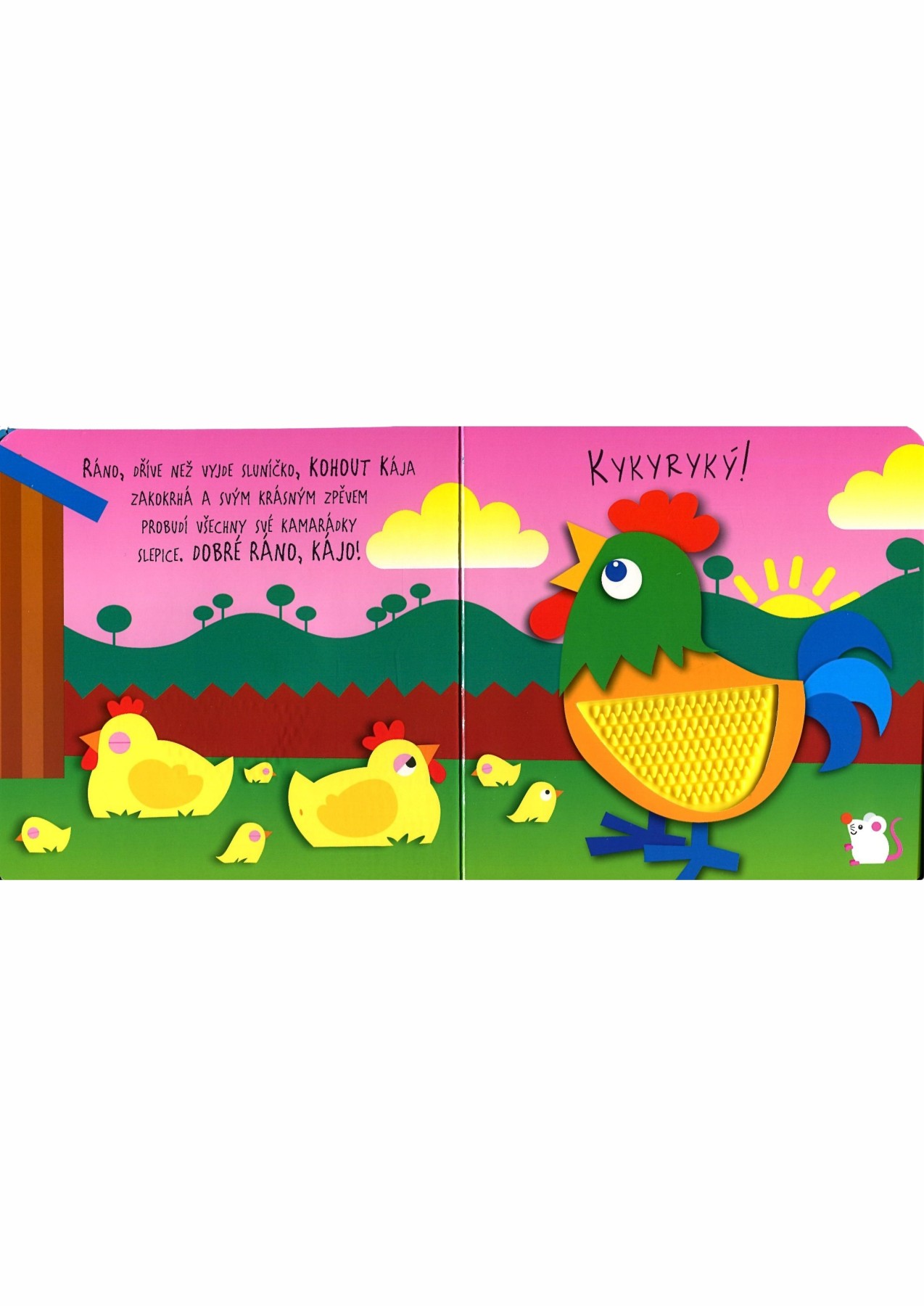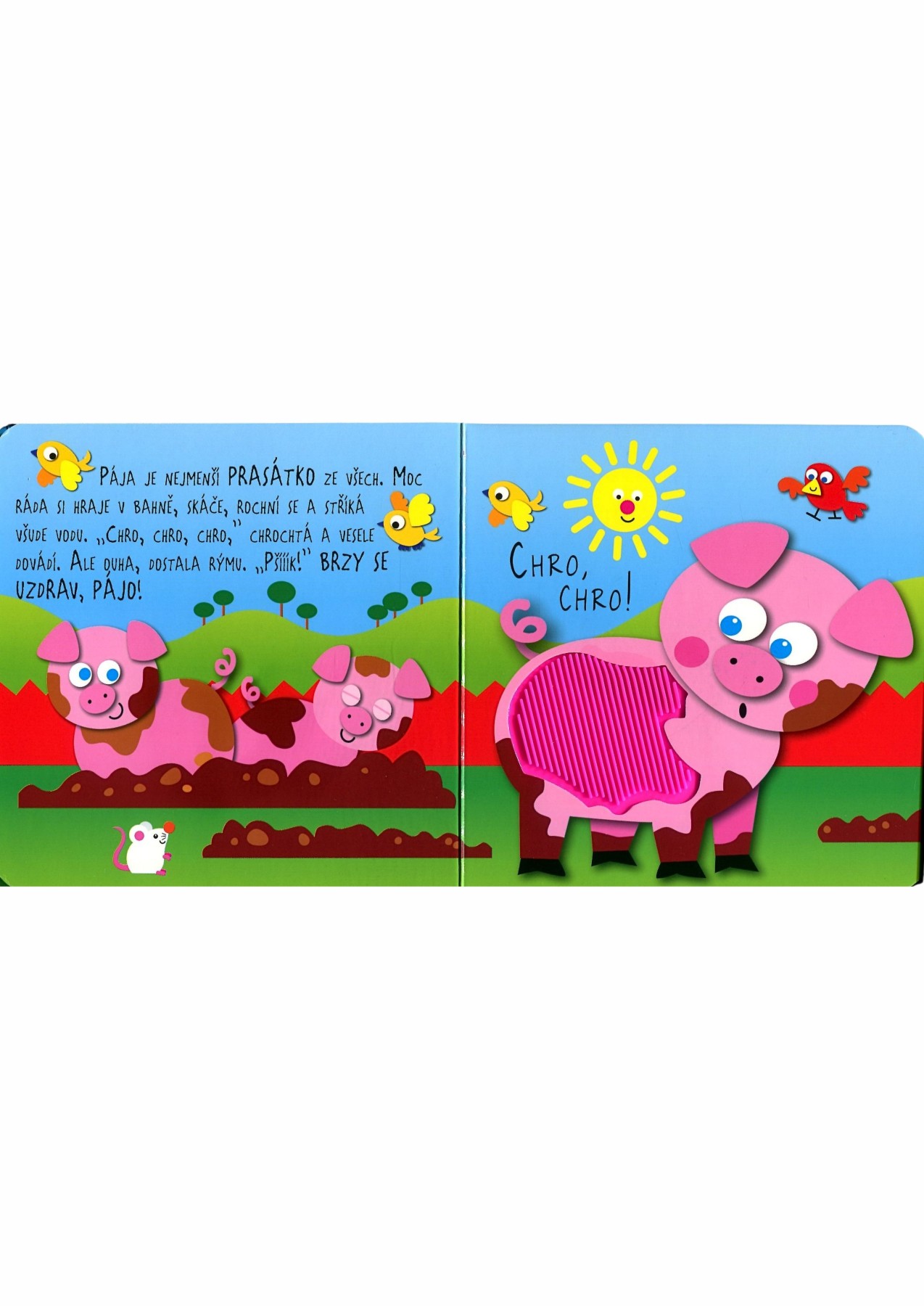Interaktivní leporelo pro děti. Tato fascinující kniha přibližuje malým čtenářům život na statku prostřednictvím poutavých ilustrací a dotykových prvků. Děti se mohou těšit na zábavné a barevné obrázky zvířátek jako jsou kravičky a prasátka, které si mohou prohlížet a zároveň se s nimi seznamovat pomocí hmatových prvků. Tato kniha nejenže stimuluje jejich jemnou motoriku, ale také podporuje zvědavost a učení o tom, jak zvířata žijí na farmě. Leporelo je navrženo tak, aby děti mohly interagovat s jednotlivými stránkami, což zajišťuje dlouhodobou zábavu. Každá stránka nabízí jedinečné dotykové prvky, které děti vyzývají k objevování a poznávání. Díky úžasným ilustracím a interaktivním prvkům je tato kniha ideální pro malé čtenáře, kteří se chtějí dozvědět více o zvířátkách na statku a užít si při tom spoustu legrace.